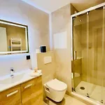 A bathtub and a shower are also featured in the bathroom. Additionally, you'll find hair dryers.